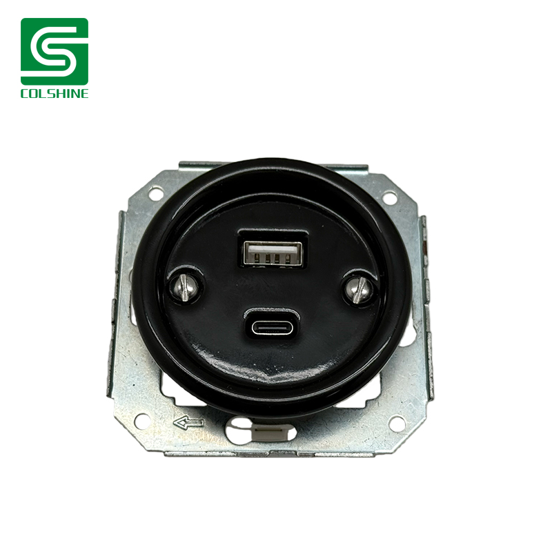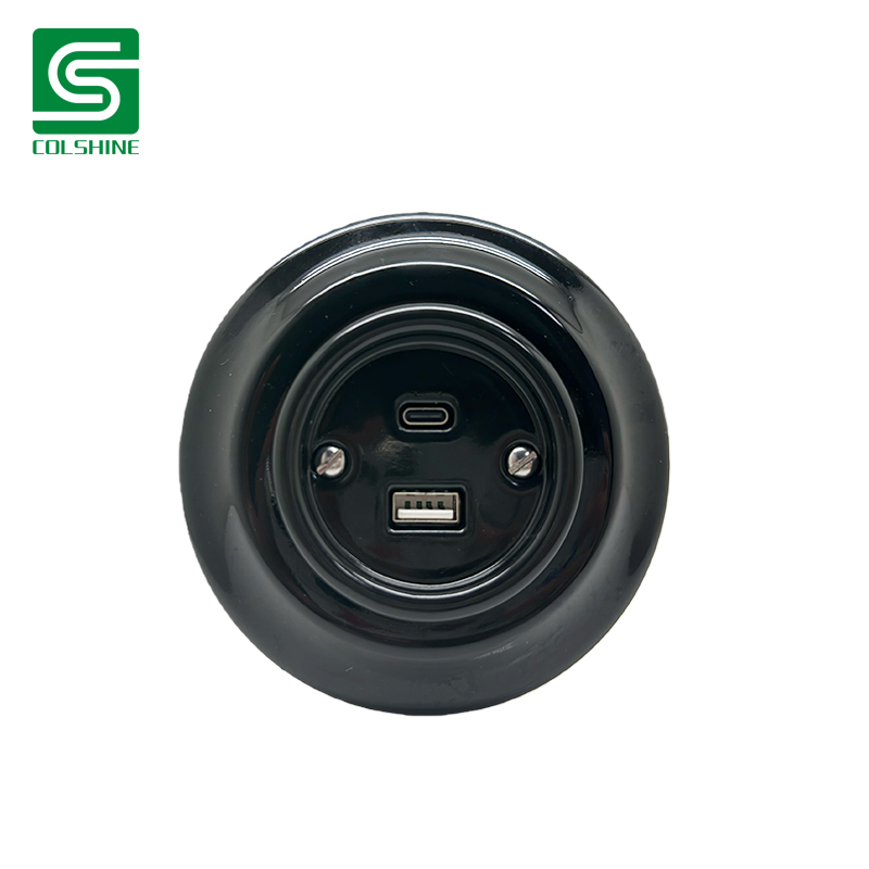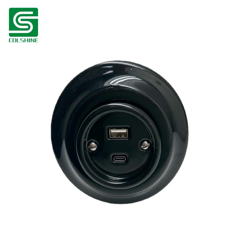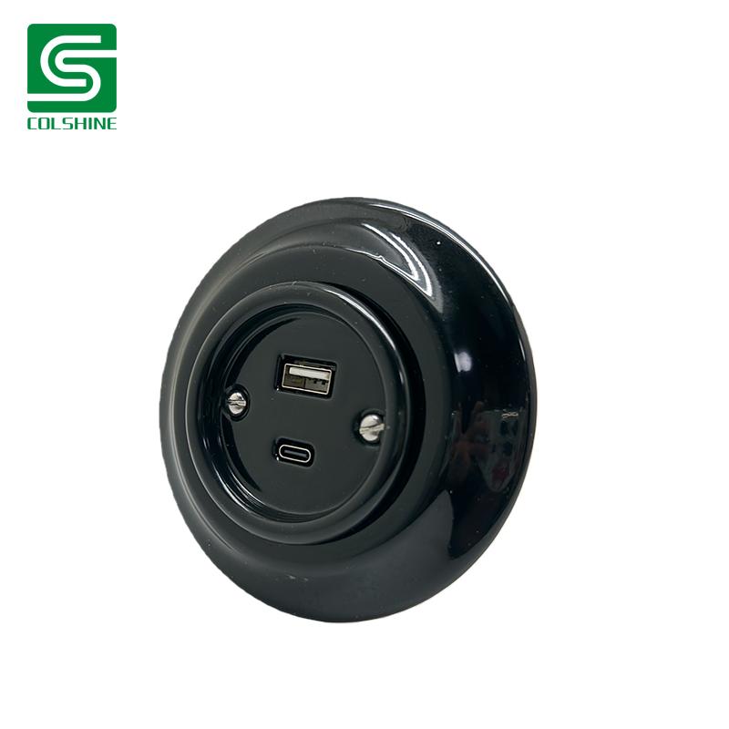 Drawing from European heritage design and modern tech needs, this black ceramic wall outlet pairs a bold matte finish with USB-A and USB-C fast-charging ports (up to 20W combined). The flush mount build fits tightly against wall surfaces, while the dark hue adds character to loft apartments, studio conversions, and themed cafés. A unique blend of style, durability, and power.